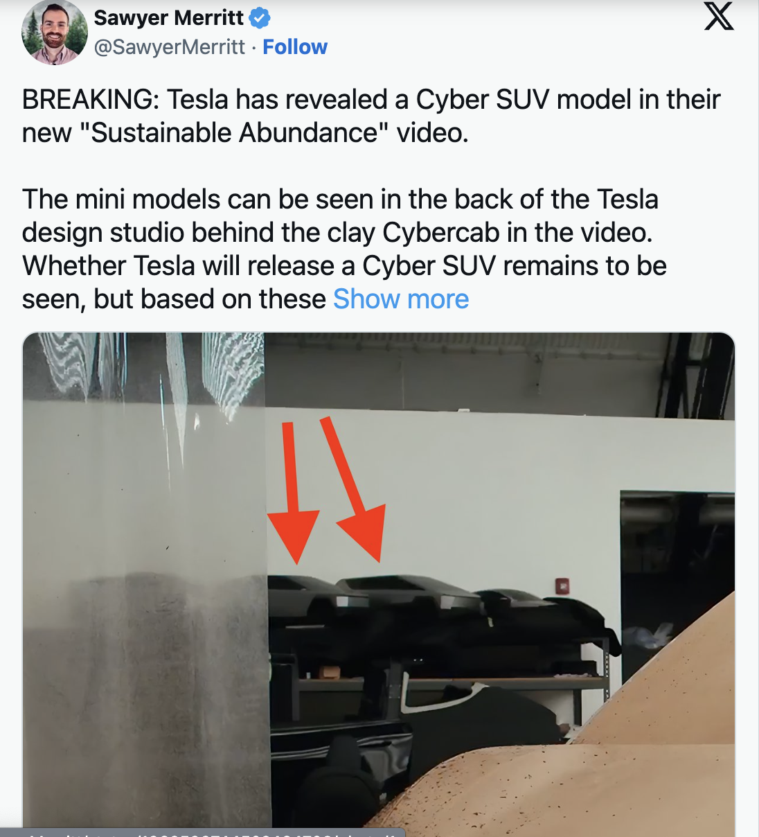 9 月 2 日消息,特斯拉在美国劳动节假期发布了第四版「宏图计划」,强调其 Optimus 擎天柱人形机器人的潜力,并在一段宣传视频中首次展示了 Cyber SUV 模型。